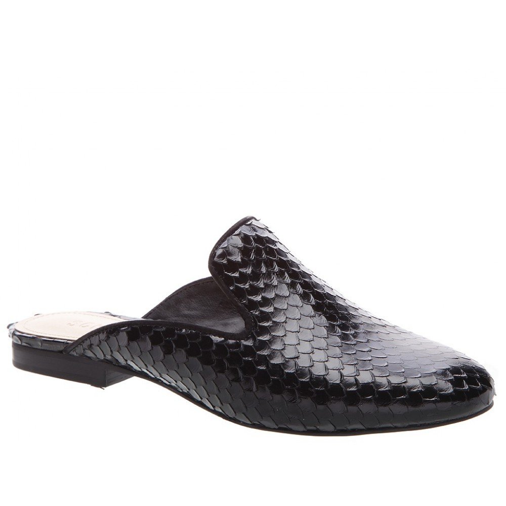 Sapato Schutz Flat Mule Black Snake